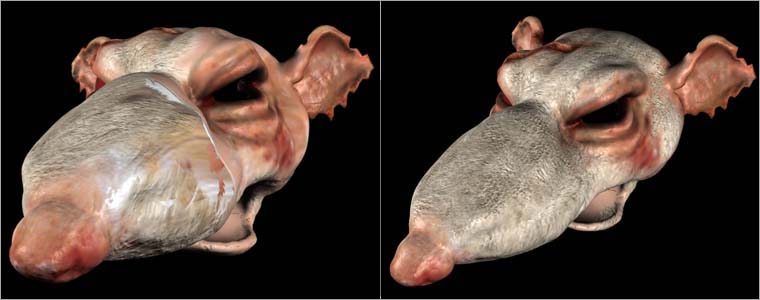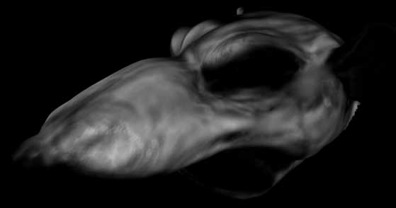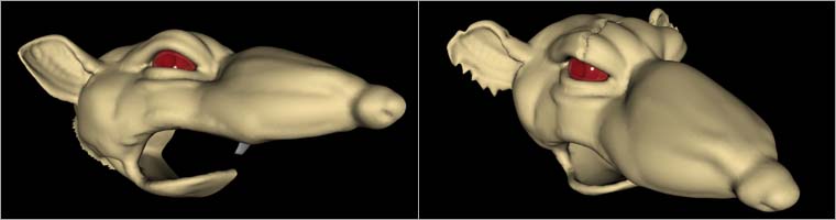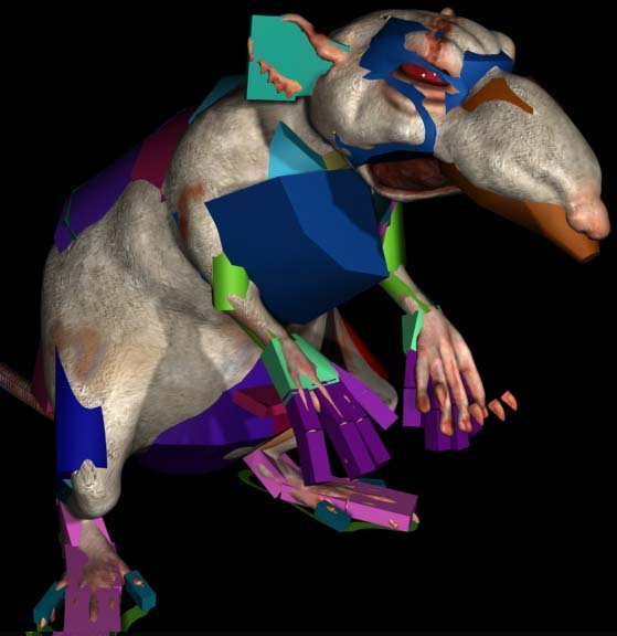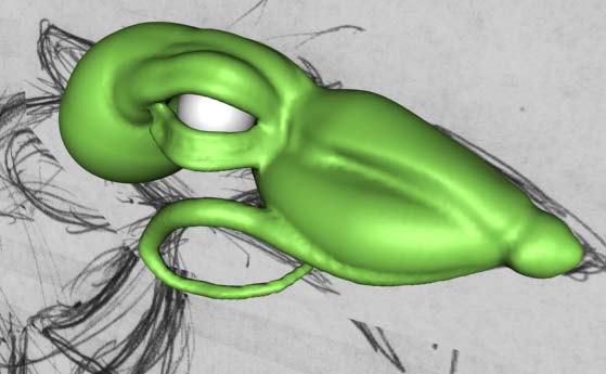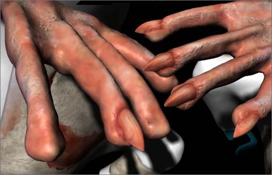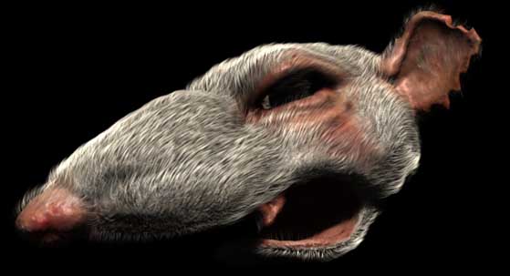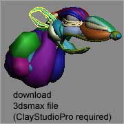 When the ClayStudio splines are finished they have to be converted to a mesh. The scars at the eye brow and the ears have been added to the mesh. |